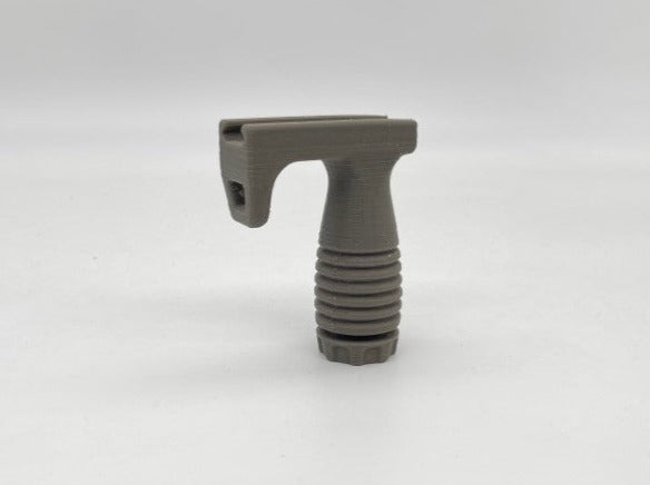 A quick detachable grip that can be used on any pic rail. This version includes a forward hand stop.